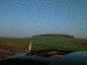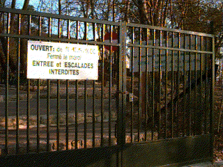| 僕は、こうして Colombey-sur-deux-eglise に、予想より30分余計にかけて行く。するとモニュメントは小高い丘の上、そしてその丘は丘の一方の斜面にへばりついているその村の一番高いところであり、それ故にその丘に辿り着く10キロ手前から見ることが出来、Instituteを併設してシャルル・ド・ゴール基金が管理しており、周囲に錆びた金属の柵が巡らせてあって、おまけに午後4時で閉門していることを知る。もう一度、何れ来ることがあるのだろうかと思案しつつ、仕方がないので記念撮影して帰ってくるが、その間も意外と来訪者はぽつぽつと絶えることなく、ド・ゴールのモニュメントの偉容を讃えに来る。 | 遠くから モニュメントを背に |