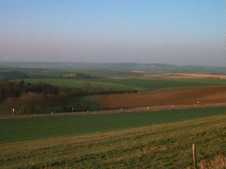 モニュメントを背にして、眺めるなだらかな丘陵。フランスの始祖クローヴィス戴冠の街、シャンパーニュのランスの南、ブルゴーニュの美食の都ディジョンの北。 |